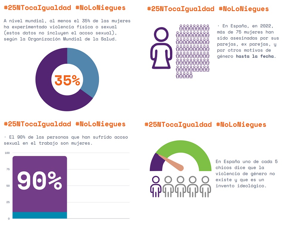 Un año más, llamamos a participar en las movilizaciones y actos convocados en los centros educativos, y en las calles los días previos y el 25 de noviembre, Día Internacional de Lucha contra las Violencias hacia las Mujeres, para seguir apoyando los derechos de todas las mujeres, en su diversidad, y visibilizando y denunciando las violencias machistas.