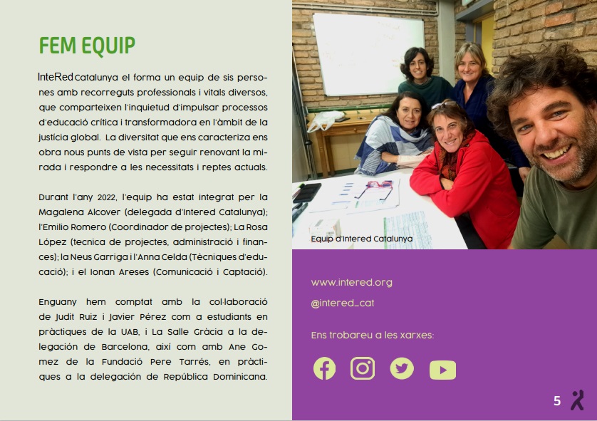 En aquesta memòria reivindiquem l'acció educativa i l'activisme que, any rere any, l'equip d'InteRed Catalunya continuem consolidant i incrementat amb les nostres accions.