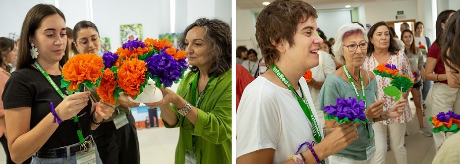 Iniciamos las jornadas con flores y terminamos con flores, donde escribimos lo que traíamos en la mochila en estas jornadas, y lo que nos llevamos en estas jornadas: ilusión, compartir experiencias, conocimientos, transformación, vivencias, etc.