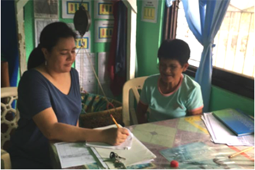 "Me sentí muy débil cuando tras el tifón regresé a mi casa y vi que prácticamente había desaparecido. No sólo me sucedió a mí, sino a todo nuestro vecindario; casi todas las casas cercanas al rompeolas estaban muy dañadas. En cuanto recuperé la serenidad, me puse a buscar mi ropa, utensilios de cocina y otras pertenencias que estaban esparcidas por toda la costa. Muchas no las pude recuperar… Tuvimos que hacer un refugio improvisado con los restos de mi casa, pero decidimos permanecer en el centro de salud del barangay, ya que no había ningún lugar seguro en nuestro refugio donde poder dormir.