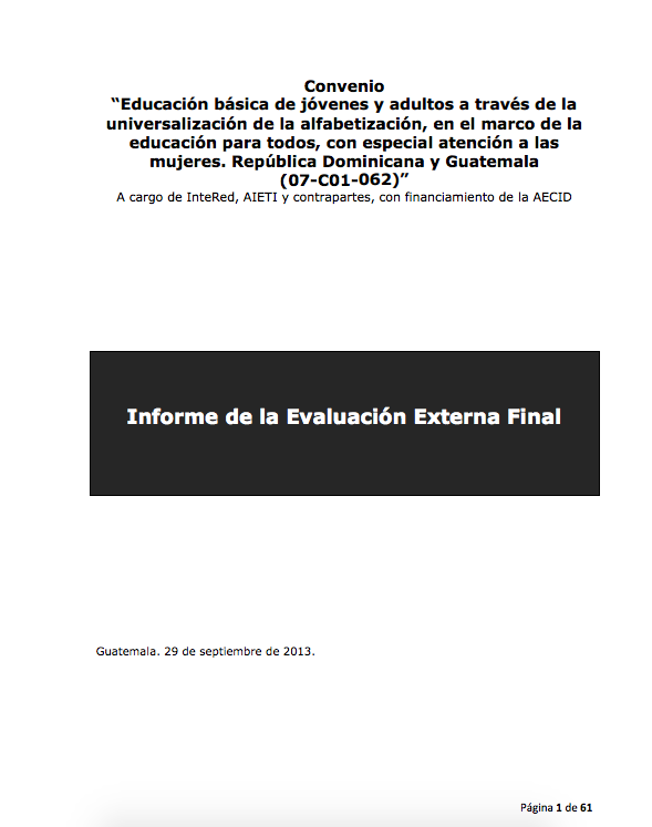 Evaluación final externa. Convenio de educación básica, especialmente a mujeres en República Dominicana y Guatemala
