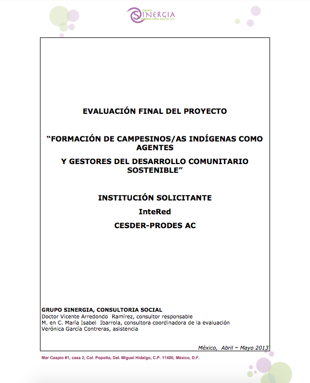 Evaluación final externa. Proyecto en el municipio de Zautla (México)
